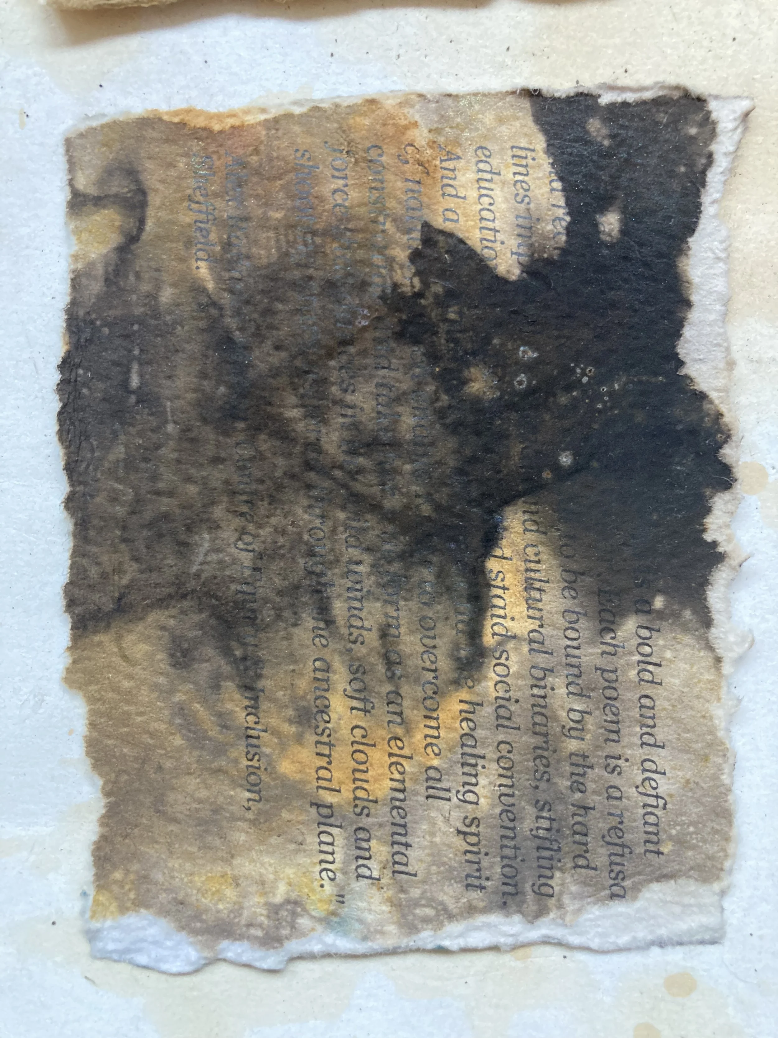 I’m feeling a weird anticipation, a shroud of strange sadness filling me as I feel into this book project. Unsettled. There’s work to be done. Right now, I’ve a pile of old, vintage and handmade papers layered with leaf mulch and earth resting in the garden. Rain-soaked, gloom-sky-soaked and hopefully moonshine-soaked too.